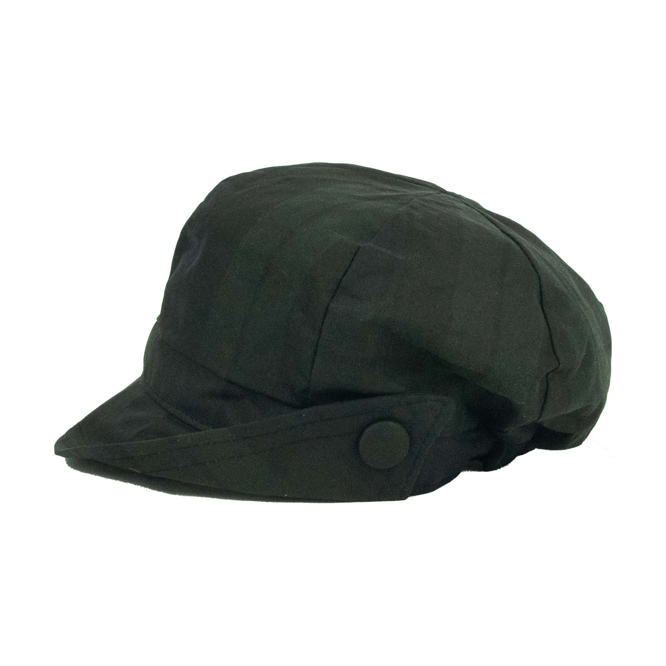 A baker boy cap with a twist! One side of the brim is turned up with a side button detail. It is made from beautiful Blackwatch tartan waxed cotton, however, please note that the Blackwatch is very faint and discreet.
